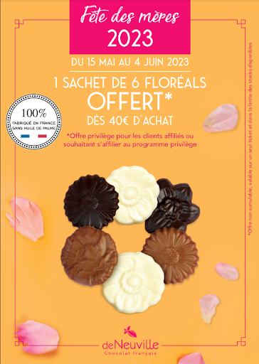 A l'occasion de la fête des mères De Neuville Challans vous offre une rose en chocolat dès 40€ d'achat !!! rendez-vous vite en boutique !