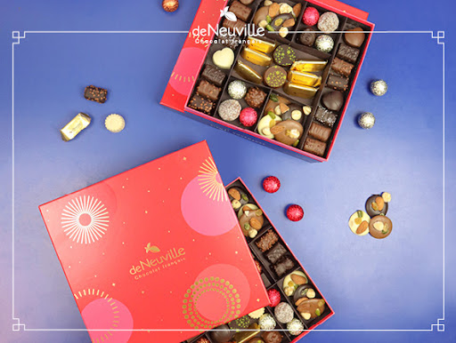 Découvrez De Neuville, votre boutique locale de chocolat français à proximité de chez vous, où l'art du chocolat est célébré avec passion. Nos chocolats raffinés, 100% fabriqués en France et sans huile de palme, sont parfaits pour les amateurs de gourmandises. Explorez notre vaste gamme de ganaches, pralinés, macarons, glaces, dragées, et spécialités régionales, tous présentés dans des compositions élégantes. Que ce soit pour offrir un cadeau mémorable ou pour vous faire plaisir, nos coffrets et bouquets sont conçus pour émerveiller. De Neuville est également votre partenaire idéal pour des solutions personnalisées dédiées aux professionnels. Venez découvrir nos délices et laissez-vous séduire par l'excellence du chocolat français.
