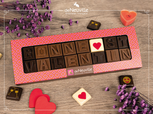 Découvrez De Neuville, votre boutique locale de chocolat français à proximité de chez vous, où l'art du chocolat est célébré avec passion. Nos chocolats raffinés, 100% fabriqués en France et sans huile de palme, sont parfaits pour les amateurs de gourmandises. Explorez notre vaste gamme de ganaches, pralinés, macarons, glaces, dragées, et spécialités régionales, tous présentés dans des compositions élégantes. Que ce soit pour offrir un cadeau mémorable ou pour vous faire plaisir, nos coffrets et bouquets sont conçus pour émerveiller. De Neuville est également votre partenaire idéal pour des solutions personnalisées dédiées aux professionnels. Venez découvrir nos délices et laissez-vous séduire par l'excellence du chocolat français.