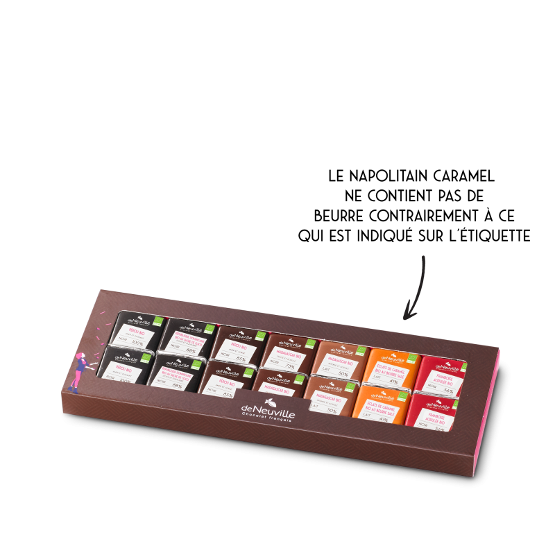 @_COFFRET 42 NAPOLITAINS BIO (assortiment de carrées de chocolat et 100% cacao BIO)