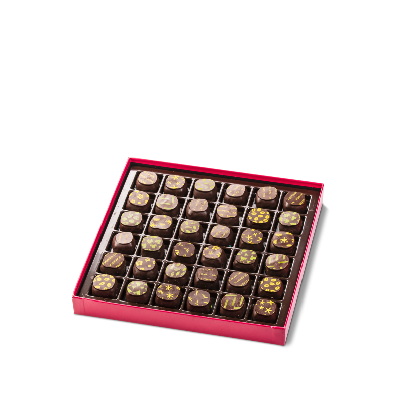 Pour le plaisir ou pour savourer, laissez-vous tenter par la collection Initiation Chocolat et ses chocolats noirs à l’amertume subtile et aux associations originales et raffinées. Les amateurs de chocolats noirs ne peuvent que se laisser emporter par cette invitation au voyage avec ce coffret de 36 chocolats. Un cadeau idéal pour faire vivre un pur moment d’émotion et de découverte. Partez au goût du monde avec des chocolats français.