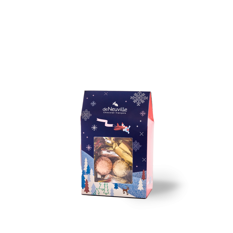 La magie de Noël à portée de petites mains ! Notre Etui de Noël pour enfant De Neuville est le compagnon idéal pour les jeunes gourmands. Il est garni d'un assortiment malicieux de papillotes et de boules en chocolat noir et au lait, des classiques indémodables qui font toujours mouche. Ce petit écrin festif est conçu pour les enfants, avec des saveurs qu'ils adorent et une présentation qui les émerveille. Le cadeau de Noël parfait pour glisser sous le sapin ou dans les chaussettes. Offrir du chocolat n'a jamais été aussi amusant !