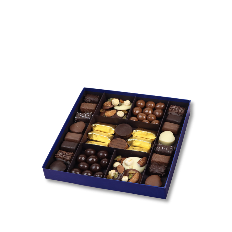 L'excellence se niche dans notre Grand Coffret Prestige De Neuville, une symphonie de saveurs pour les palais les plus exigeants ! Plongez dans un assortiment de pralinés et ganaches de notre gamme "Tellement Français", des giandujas fondants pour le délice, et des billes de céréales enrobées de chocolat noir ou au lait pour le croquant. Chaque pièce est une œuvre d'art, une invitation à la dégustation raffinée. Ce coffret de chocolat est le cadeau idéal pour marquer les esprits, parfait pour vos cadeaux clients ou pour remercier vos salariés. Offrez l'exception, offrez De Neuville !