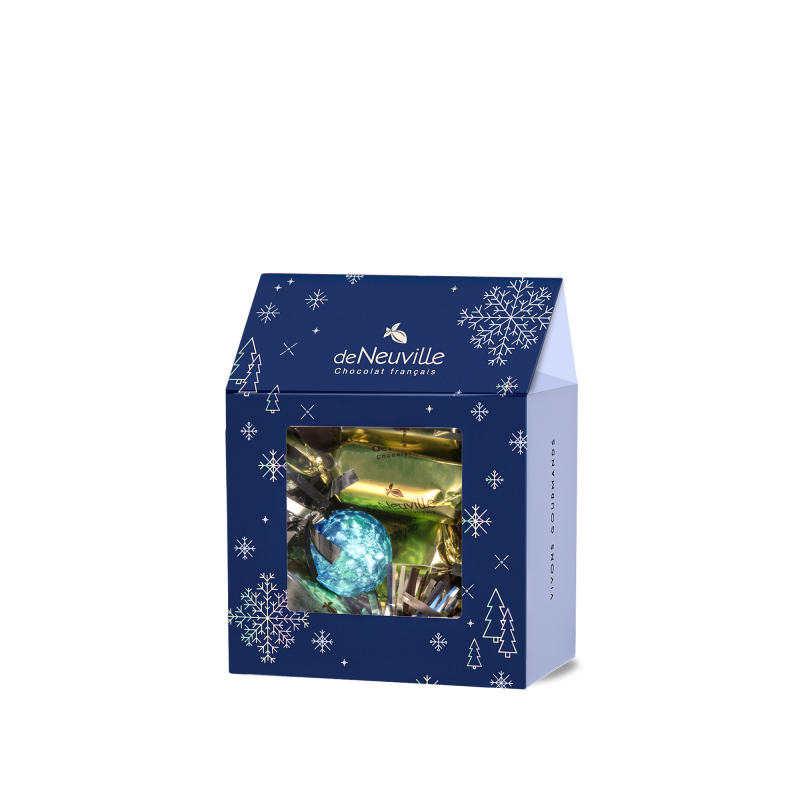 Imaginez une maison en pain d'épices, mais en mieux : voici notre Grande Maison de Noël De Neuville ! Ce sublime emballage festif n'attend que d'être exploré. À l'intérieur, un assortiment généreux de papillotes et de boules en chocolat noir et au lait, une invitation à la découverte et au partage. Plus qu'un simple coffret de chocolat, c'est une pièce maîtresse pour votre table de Noël, un véritable objet de décoration gourmand. Le cadeau de Noël parfait pour les familles nombreuses ou pour celles et ceux qui aiment voir les choses en grand !