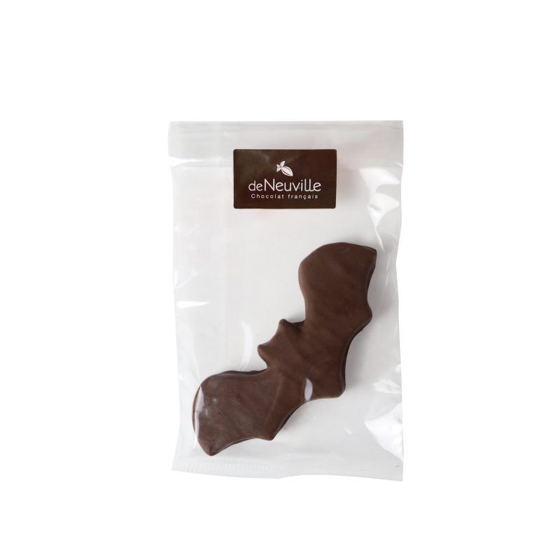 Croquez cette bouchée chauve-souris de 10cm de large avant qu'elle ne s'envole. Un délicieux praliné fondant au riz soufflé ultra croustillant enrobé de chocolat au lait. Envoyez des chocolats d'Halloween à vos proches dans toute la France avec De Neuville.