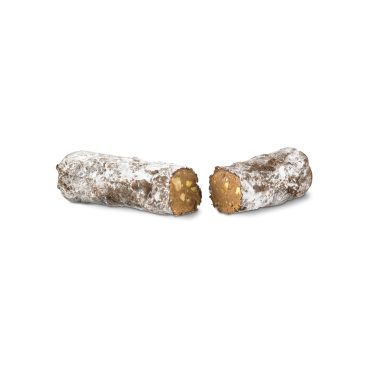 Un saucisson praliné feuilleté aux éclats d'amandes, de noisettes et de pistaches, enrobé d'une fine poudre de cacao à 72%. Un trompe l'œil qui épatera vos convives ! Préparez votre dégustation gourmande en ligne avec le service de livraison à domicile dans toute la France.