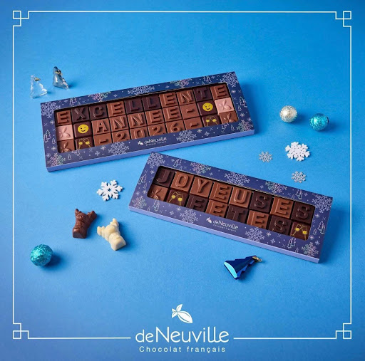 Découvrez De Neuville, votre boutique locale de chocolat français à proximité de chez vous, où l'art du chocolat est célébré avec passion. Nos chocolats raffinés, 100% fabriqués en France et sans huile de palme, sont parfaits pour les amateurs de gourmandises. Explorez notre vaste gamme de ganaches, pralinés, macarons, glaces, dragées, et spécialités régionales, tous présentés dans des compositions élégantes. Que ce soit pour offrir un cadeau mémorable ou pour vous faire plaisir, nos coffrets et bouquets sont conçus pour émerveiller. De Neuville est également votre partenaire idéal pour des solutions personnalisées dédiées aux professionnels. Venez découvrir nos délices et laissez-vous séduire par l'excellence du chocolat français.