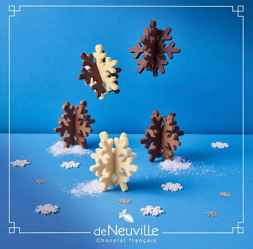 Des flocons chocolatés tout droit sortis d’un atelier magique. ❄️❄️ 🎁 C’est le cadeau parfait pour surprendre vos invités ou orner vos tables de fêtes ! #deneuville #vivonsgourmands #chocolat chocolatfrançais gourmandise noel fete madeinfrance flocon cadeau