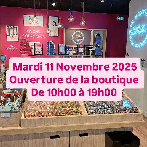✨🍫 Grand événement à Barberey-Saint-Sulpice ! 🍫✨Nous sommes heureux de vous annoncer l'ouverture de notre chocolaterie de Neuville le 28 MARS 2025.Horaires d'ouverture : du lundi au samedi, de 10h00 à 19h00 non-stop.Retrouvez-nous à l'intérieur de la galerie marchande d'AUCHAN.Nous serons ravis de vous accueillir pour un moment gourmand et convivial. Venez découvrir nos créations et compositions chocolatées ! 🍬🎉Pour plus de surprises et de douceurs à venir, suivez-nous sur nos réseaux sociaux et n'hésitez pas à partager avec vos amis.Franck et Valérie Chocolaterie de Neuville Centre Commercial AUCHAN 10600 BARBEREY-SAINT-SULPICE#ChocolaterieDeNeuville #BarbereySaintSulpice #Ouverture #Gourmandise #passionchocolat #deneuville #vivons-gourmands #deneuville-vivons gourmands #troyes #france #chocolatfrançais #ouverture #nouveauté #chocolaterie