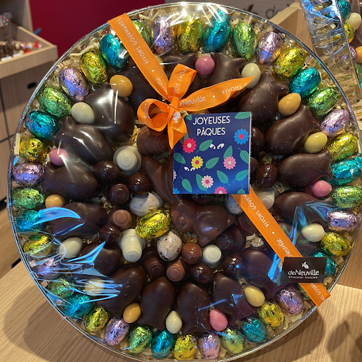 Découvrez De Neuville, votre boutique locale de chocolat français à proximité de chez vous, où l'art du chocolat est célébré avec passion. Nos chocolats raffinés, 100% fabriqués en France et sans huile de palme, sont parfaits pour les amateurs de gourmandises. Explorez notre vaste gamme de ganaches, pralinés, macarons, glaces, dragées, et spécialités régionales, tous présentés dans des compositions élégantes. Que ce soit pour offrir un cadeau mémorable ou pour vous faire plaisir, nos coffrets et bouquets sont conçus pour émerveiller. De Neuville est également votre partenaire idéal pour des solutions personnalisées dédiées aux professionnels. Venez découvrir nos délices et laissez-vous séduire par l'excellence du chocolat français.