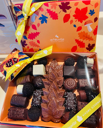 Quand les feuilles tombent, les envies chocolatées grimpent… 🍂 🍫 Et quoi de mieux pour accompagner cette douce saison qu'un coffret De Neuville rempli de chocolats et gourmandises ? L'automne a décidément très bon goût !😅 #vivonsgourmands #chocolat #chocolatfrançais #gourmandise #automne #coffret #feuille
