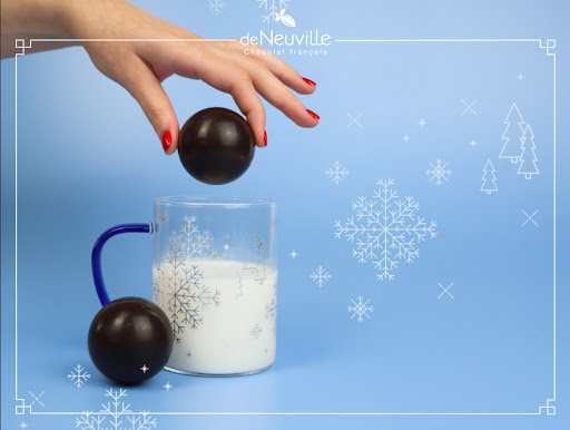 💥 Une expérience inédite, à tester tout de suite ! 🍫 Profitez d'un moment ludique et gourmand avec notre chocobombe ultra chocolatée. Comment la déguster ? C'est simple : 1) Faire chauffer 20cl de lait 2) Mettre la chocobombe dans un mug et la recouvrir de lait chaud 3) Mélanger et déguster votre chocolat chaud ! #deneuville #vivonsgourmands #chocolat #chocolatfrançais #gourmandise #noel #fete #chocobombe #hotchocolate
