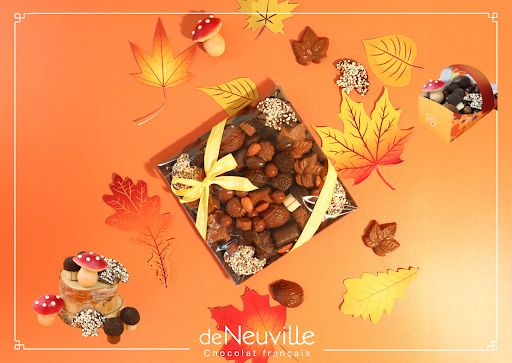 Chez de Neuville nous souhaitons vous offrir le meilleur de la qualité et du savoir-faire français en vous proposant un chocolat raffiné, des gourmandises régionales, des messages en chocolats à personnaliser, des macarons à croquer… Des produits 100% fabriqués en France et sans huile de palme dans un univers coloré, joyeux, espiègle et contemporain. Notre équipe d’amoureux du chocolat est là pour vous accompagner dans le choix de vos cadeaux, petits plaisirs ou tout simplement pour vous faire découvrir notre univers. Nous vous accueillons également avec plaisir dans notre salon de thé pour se détendre autour d’une boisson (froide ou chaude) et/ou d’un plaisir sucré. Vivons gourmands !
