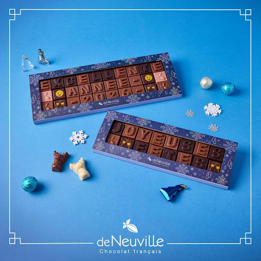 Découvrez De Neuville, votre boutique locale de chocolat français à proximité de chez vous, où l'art du chocolat est célébré avec passion. Nos chocolats raffinés, 100% fabriqués en France et sans huile de palme, sont parfaits pour les amateurs de gourmandises. Explorez notre vaste gamme de ganaches, pralinés, macarons, glaces, dragées, et spécialités régionales, tous présentés dans des compositions élégantes. Que ce soit pour offrir un cadeau mémorable ou pour vous faire plaisir, nos coffrets et bouquets sont conçus pour émerveiller. De Neuville est également votre partenaire idéal pour des solutions personnalisées dédiées aux professionnels. Venez découvrir nos délices et laissez-vous séduire par l'excellence du chocolat français.