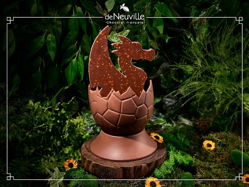 Certains cadeaux se savourent d’abord avec les yeux. 🎁 Rend🐻ez-vous dans notre boutique De Neuville participante pour tenter de gagner🐰 cette magnifique pièce en chocolat de 500g. #deneuville #chocolat #chocolatfrançais #gourmandise #paques #dragon🦁