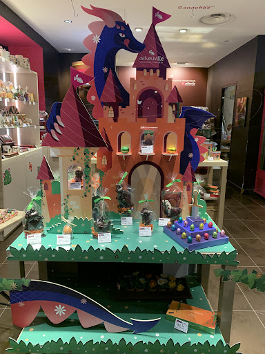 Le Château du dragon avec ses petits amis chocolatés, la princesse, le chevalier, la licorne, le dragon et bien d'autres encore. #chocolatfrançais#deneuvillestgratien#Pâques#dragon#château#