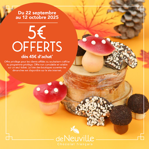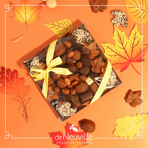 Découvrez De Neuville, votre boutique locale de chocolat français à proximité de chez vous, où l'art du chocolat est célébré avec passion. Nos chocolats raffinés, 100% fabriqués en France et sans huile de palme, sont parfaits pour les amateurs de gourmandises. Explorez notre vaste gamme de ganaches, pralinés, macarons, glaces, dragées, et spécialités régionales, tous présentés dans des compositions élégantes. Que ce soit pour offrir un cadeau mémorable ou pour vous faire plaisir, nos coffrets et bouquets sont conçus pour émerveiller. De Neuville est également votre partenaire idéal pour des solutions personnalisées dédiées aux professionnels. Venez découvrir nos délices et laissez-vous séduire par l'excellence du chocolat français.