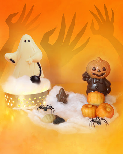 Bouuuh ! Même les fantômes succombent au chocolat… 👻😉Et vous, arriverez-vous à résister à ces petites douceurs qui brillent dans la nuit d'Halloween ?#deneuville #chocolat #chocolatfrançais #gourmandise #halloween #citrouille #fantome