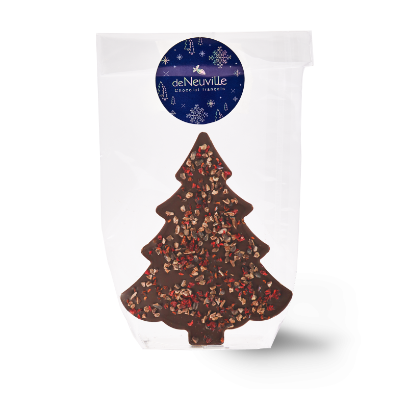Imaginez un sapin de Noël, mais en version gourmande ! Notre mendiant en chocolat noir, mesurant 14 cm, est une véritable œuvre d'art culinaire signée De Neuville. Ce chocolat noir de haute qualité est délicatement parsemé de framboises, offrant une symphonie de saveurs où l'intensité du cacao rencontre la fraîcheur acidulée des fruits rouges. Ce mendiant sapin est bien plus qu'un simple chocolat ; c'est une expérience sensorielle qui émerveillera vos papilles et celles de vos proches. Grâce à notre service de livraison rapide, vous pouvez facilement envoyer ce délice chocolaté directement chez vous ou chez vos amis et famille. C'est le cadeau idéal pour ajouter une touche de sophistication à vos célébrations de Noël. Chaque bouchée révèle le savoir-faire de De Neuville, un chocolatier français renommé pour la qualité et le raffinement de ses créations. Ce mendiant est une invitation à découvrir le mariage parfait entre tradition et innovation, un cadeau qui dit "Je pense à toi" avec élégance et gourmandise. Ne manquez pas l'occasion de faire plaisir avec ce trésor chocolaté. Commandez dès maintenant et laissez la magie du chocolat opérer.