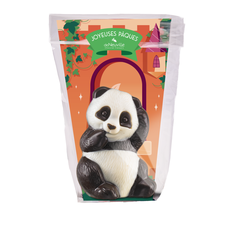 Découvrez Thomas le panda de De Neuville, une création adorable et irrésistible pour célébrer Pâques avec douceur ! Ce panda en chocolat noir, composé à 58% de cacao et haut de 13 cm, est bien plus qu'une simple gourmandise : c'est un symbole de tendresse qui émerveillera les petits et les grands. Son design mignon et son chocolat noir intense en font un cadeau idéal ou une pièce maîtresse pour votre table de fête. Chaque bouchée est une invitation au plaisir, avec le goût délicieux du chocolat noir. Savourez l'intensité du chocolat noir De Neuville, élaboré avec des ingrédients sélectionnés pour leur qualité et leur saveur. N'hésitez pas à le cacher dans le jardin ou à l'offrir comme cadeau, il fera toujours son effet ! Vous souhaitez le cacher pour la chasse ? Commandez-le en ligne en livraison à domicile ou retrait boutique.